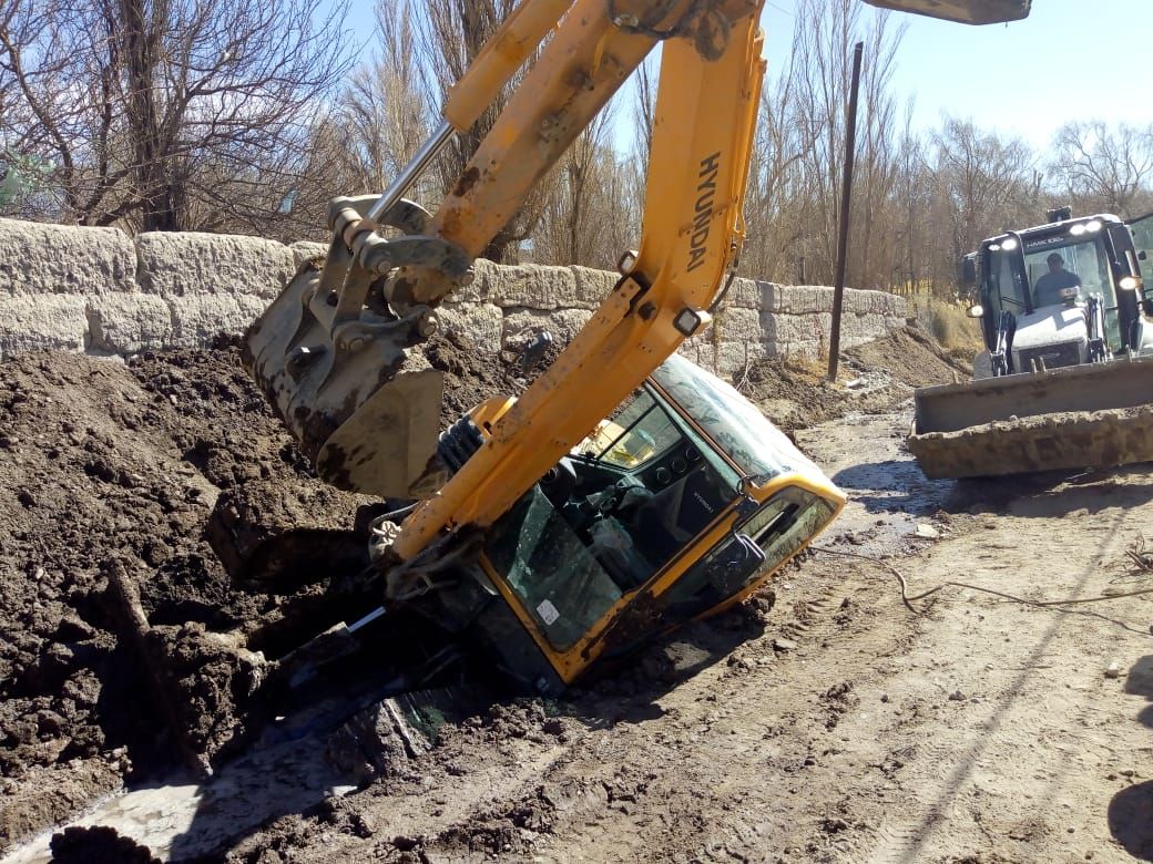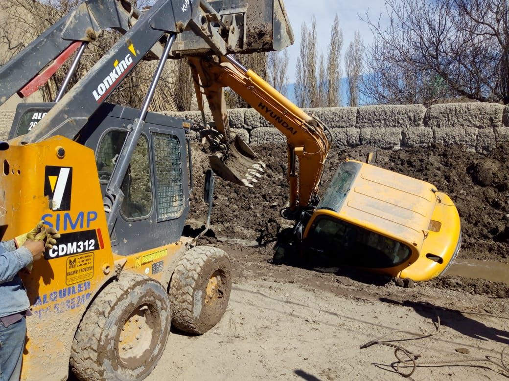 Una retroexcavadora cayó a una zanja en Rodeo: el maquinista salió ileso