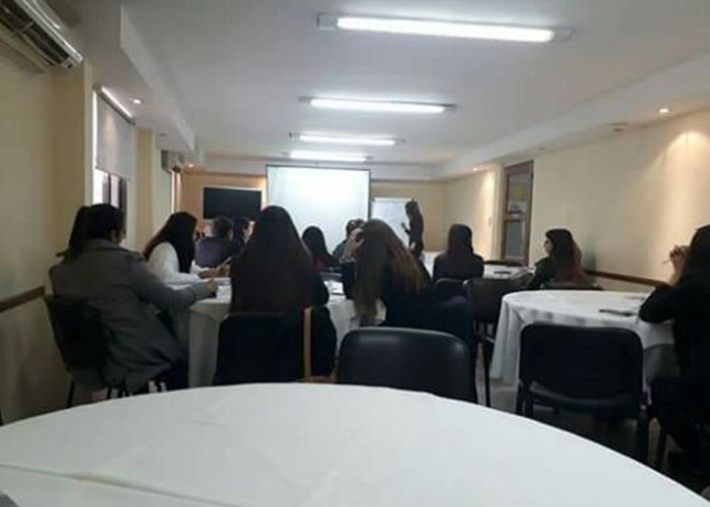 Las clases. Esta es una de las clases que se dictaban en el salón de un hotel. Los denunciantes presentaron como prueba la publicidad que hacía Capacitaciones Laborales San Juan a través de Facebook.