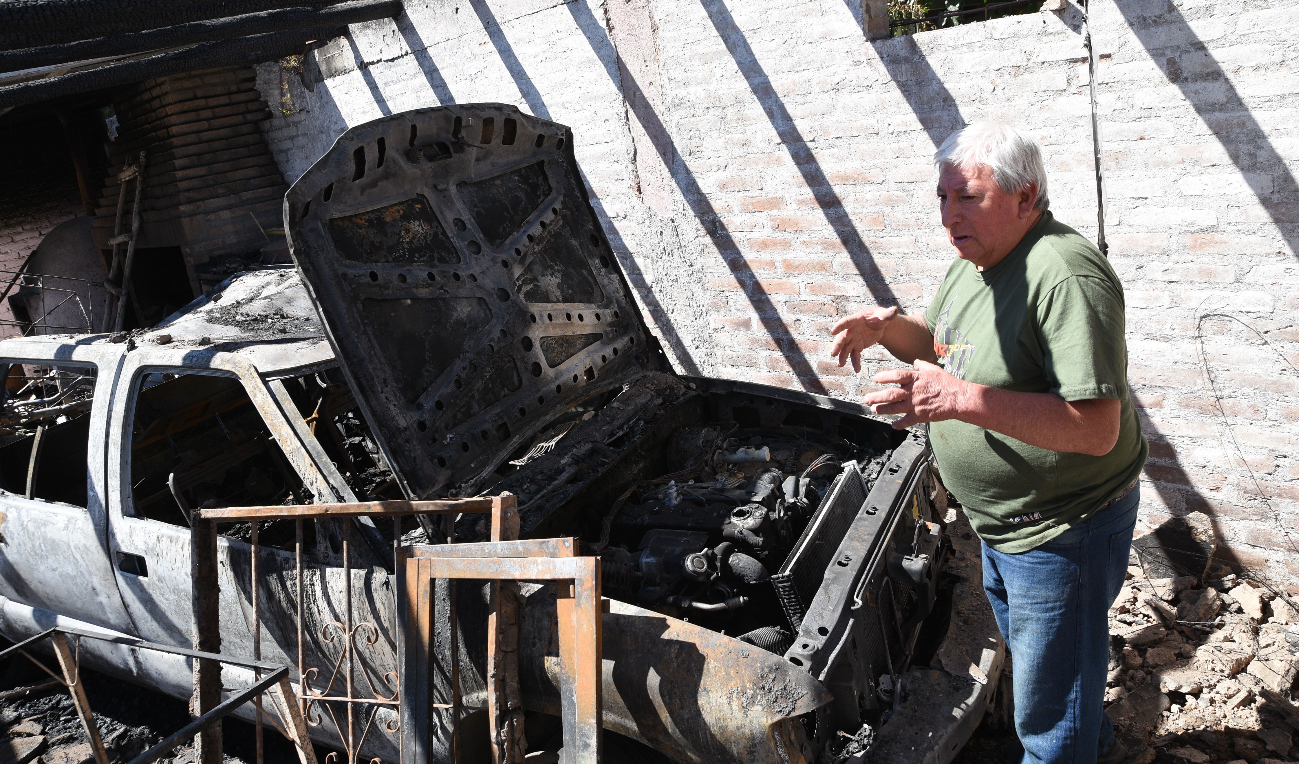 Hay tristeza en los ojos de César Acosta. Con 64 años y las ganas intactas de trabajar hombro a hombro en la verdulería con su esposa Hilda Maza, el lunes por la tarde esas ganas recibieron un golpe duro. Un incendio destruyó por completo la camioneta Chevrolet S-10 en la que él iba todos los días a la feria municipal a buscar mercadería. Y también el garaje donde estaba ese vehículo y un pequeño salón de 4 por 6 metros que el hombre ponía a punto para que allí se mudara un nieto con su pareja. Dos camas, un aparador, una mesa y todo lo que había en esa habitación sucumbieron a las llamas.