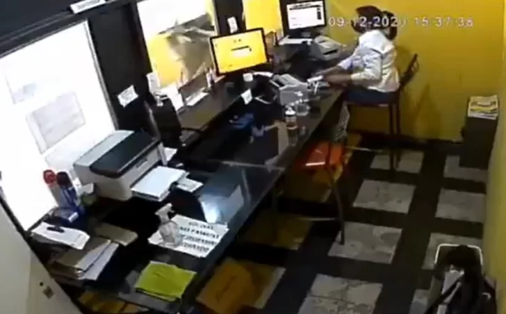 Todo ocurrió en dos minutos. La cajera del "San Juan Servicios" se encontraba sentada esperando que llegara el próximo cliente cuando fue sorprendida por un sujeto que rompió uno de los vidrios con una masa y luego de obligarla a abrir una caja fuerte, se llevó un botín de 580.000 pesos.