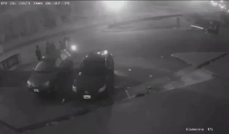Pese a estar malherido, Gatti logró ponerse de pie, según las imágenes registradas por las cámaras. Los motochorros escaparon de contramano en la moto y con parte de los equipos de sonido robados.