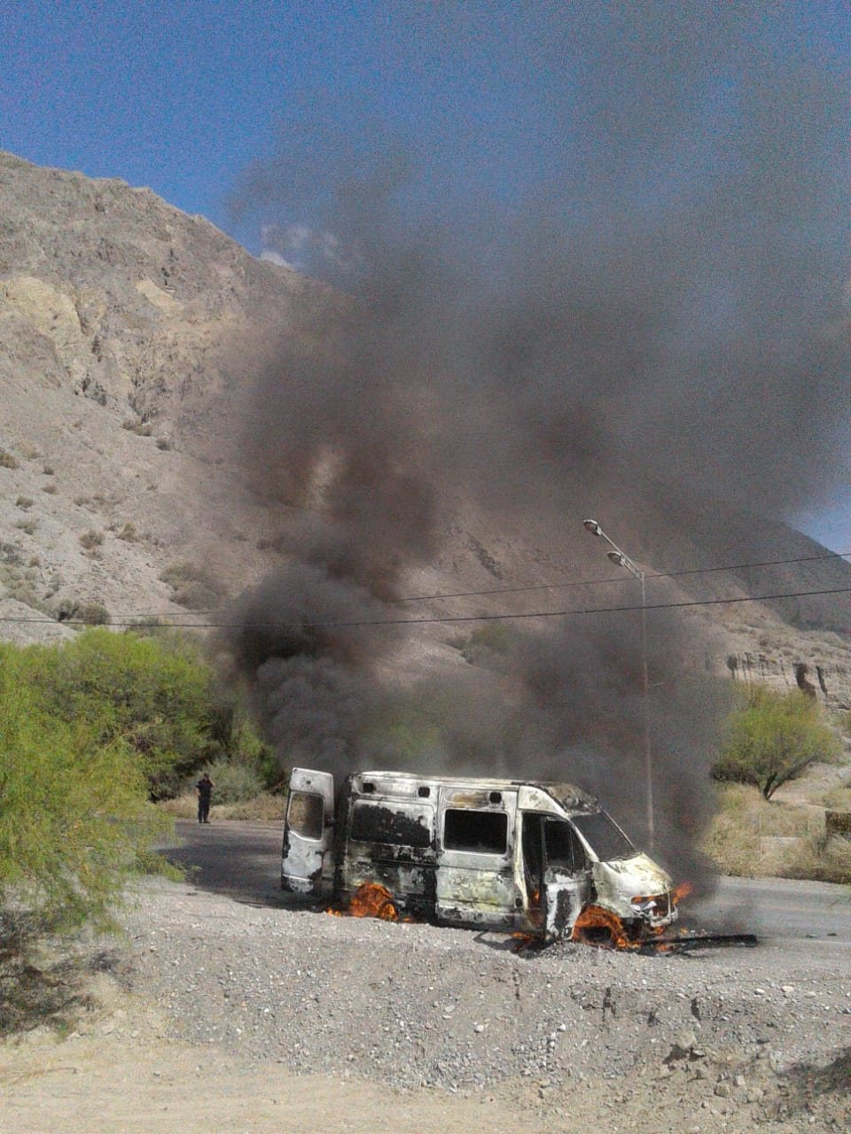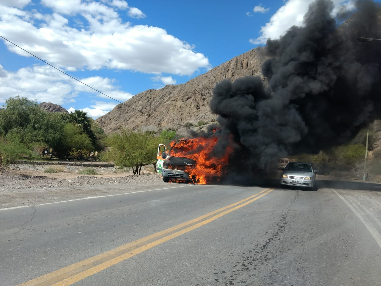 Las llamas provocaron pérdidas totales en una ambulancia de servicios de emergencia Guadalupe. El hecho ocurrió en horas de la siesta en el ingreso al departamento Zonda. Si bien todavía no se realizaron las correspondientes pericias, todo parece indicar que las llamas comenzaron por un desperfecto mecánico.