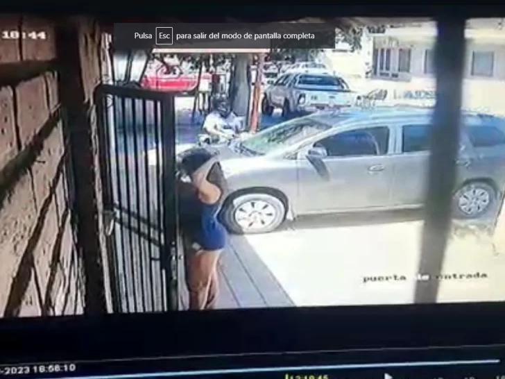 Tal como se ve en las imágenes, la mujer se baja del vehículo y mientras había otros padres esperando por sus hijos, ella camina por la vereda sin imaginar lo que iba a suceder. Cuando llega su turno, en la esquina de calle Tucumán y Chile, en Capital, se ve cómo una moto aguarda por hacer el movimiento.