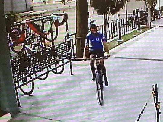 El sujeto estuvo merodeando el bicicletero que está a unos 5 metros de la garita donde hay personal de seguridad. Cuando se decidió, la descolgó y salió por la puerta.