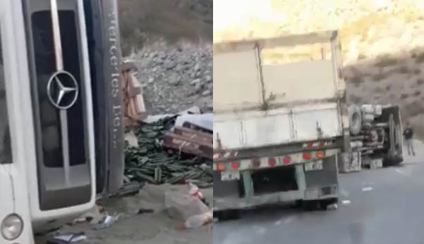 Esta mañana camión volcado en ruta 436 en cercanía de la localidad de Talacasto, Departamento de Ullum