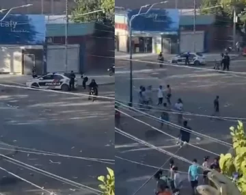 El video muestra que uno de los aprehendidos logró zafar tras escapar corriendo. En las imágenes se puede ver que el patrullero está parado en la esquina de Diagonal Sarmiento e Ignacio de la Roza. Hay algunos efectivos cerca, pero el joven igual toma coraje y logra huir con una carrera a toda velocidad.