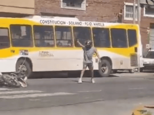 Esa situación fue aprovecha por Acosta, que volvió corriendo con intenciones de recuperar su moto y golpeó al asaltante con su casco.