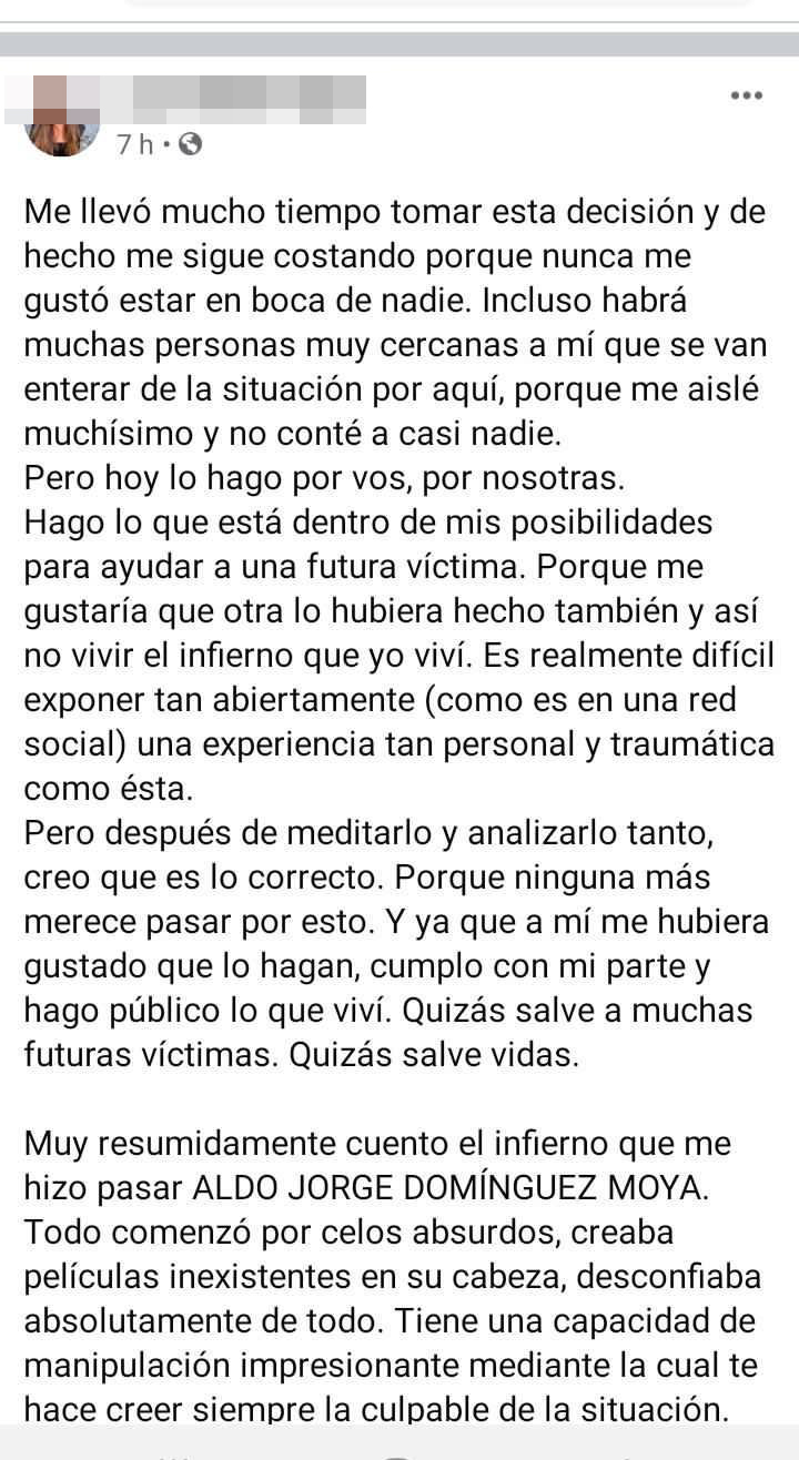 "Todo comenzó por celos absurdos, creaba películas inexistentes en su cabeza, desconfiaba de todo. Tiene una capacidad de manipulación impresionante", relató la joven en sus redes sociales.