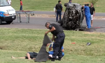 Lo que pretendía ser un viaje de placer de unos días en la provincia se convirtió ayer en una tragedia para dos parejas de amigos mendocinos que viajaban en un auto Citroën C3 y que protagonizaron un tremendo accidente en un lugar peligroso de Capital: Acceso Sur y Circunvalación. En ese tramo, el rodado en el que circulaban los jóvenes, al parecer, iba a alta velocidad e impactó contra una rotonda. De ahí enfiló hacia el guardarail y lo atravesó. El coche voló unos 20 metros hasta dar contra un árbol. y después empezó a dar varios tumbos arrojando por los aires a dos ocupantes. El resultado: uno de esos jóvenes murió al salir despedido junto a otra chica. El otro joven y la muchacha tuvieron que ser rescatados por los bomberos de entre los hierros retorcidos. Los tres que sobrevivieron sufrieron heridas de distinta consideración y anoche estaban internados en el hospital Rawson, precisaron en la Policía.