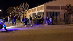 Según explicaron fuentes policiales, el conductor circulaba por calle Progreso e intento doblar por el Lateral de la Ruta 40, en Rawson, pero perdió el control de la camioneta Volkswagen Saveiro Pick Up y terminó volcando e impactando contra un galpón.