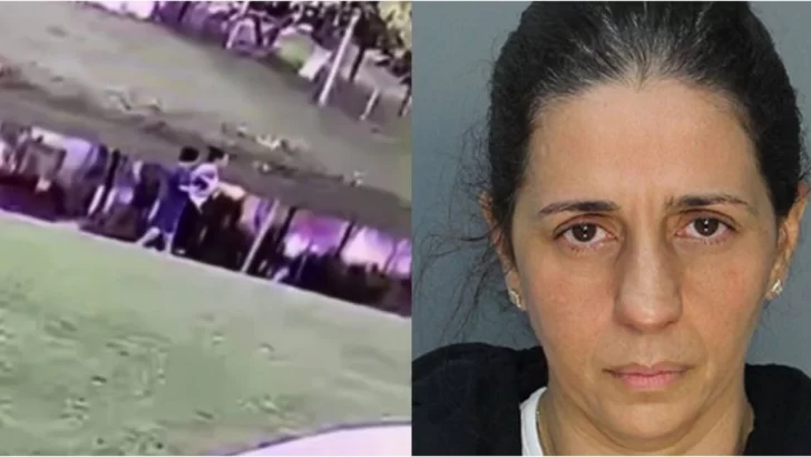En las imágenes, captadas por cámaras de seguridad a las 18:28 horas del jueves, se ve a la detenida y al menor caminando muy cerca de la orilla de un canal, en el condominio de apartamentos Kendall Acres, en la ciudad de Miami.