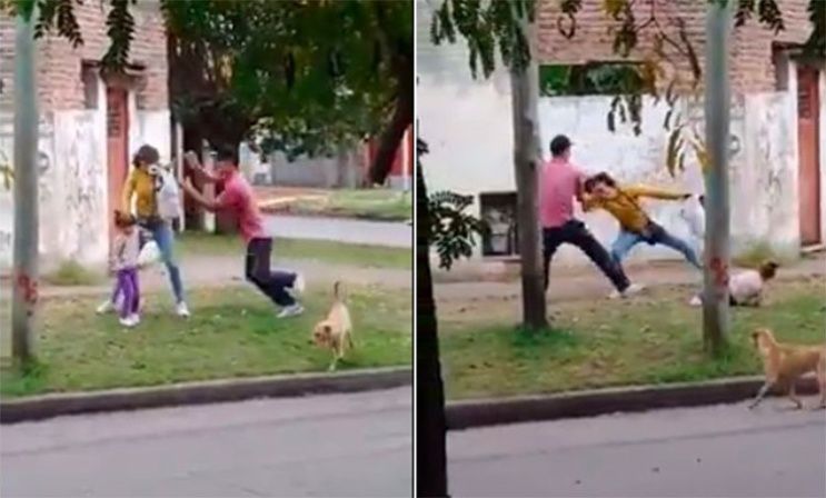 Dos mujeres filmaron con su celular el ataque de un salvaje hacia su pareja, que tenía en brazos a su pequeña hija, en una barrio de la localidad bonaerense de Lanús.