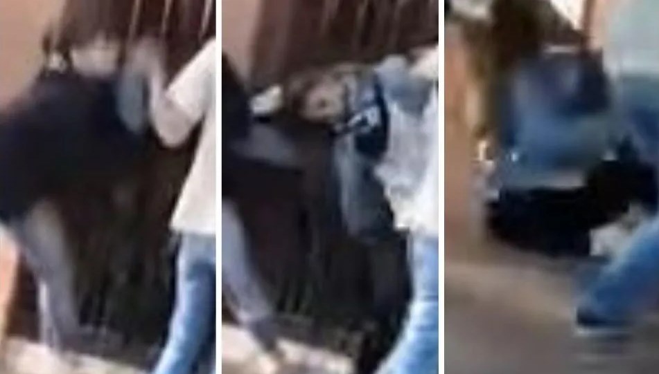En el video se puede ver cómo una mujer con campera negra se acerca a Estefanía y la increpa diciéndole que deja a la nena. Como esta se resiste, la agarra de los pelos y la tira al piso mientras la menor llora.