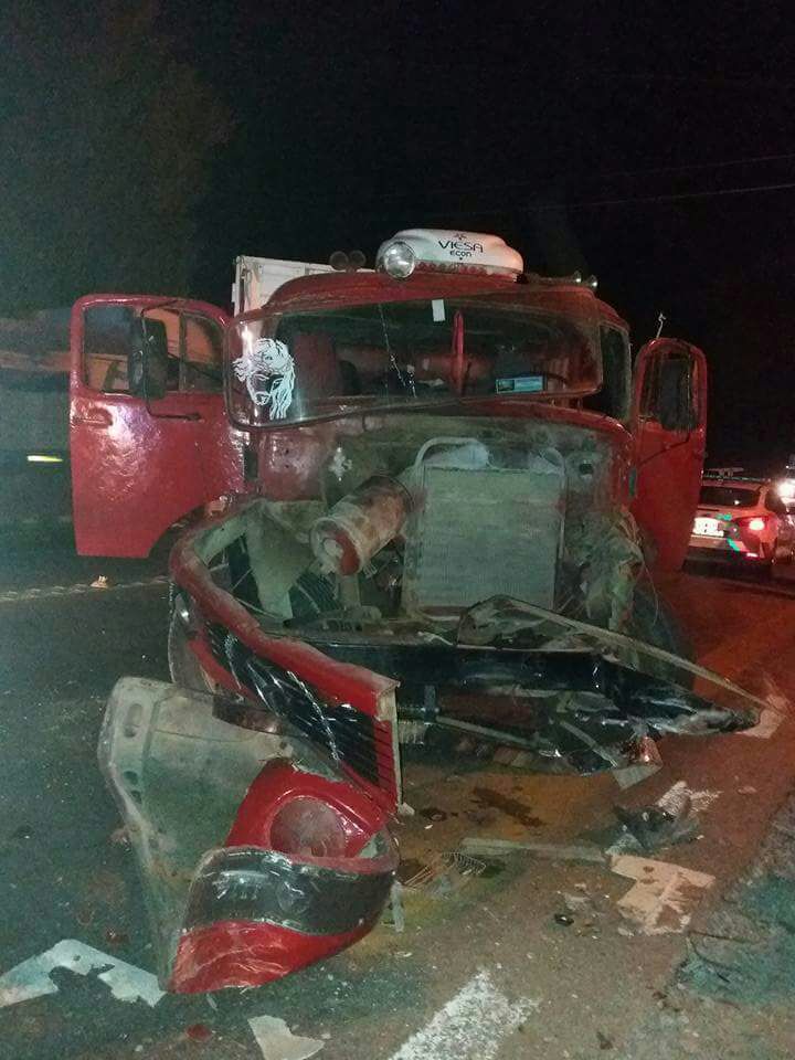 Dos camioneros protagonizaron un violento choque en la  localidad de Colonia Fiscal, en Sarmiento. Los conductores debieron recibir asistencia médica, pero se encuentran fuera de peligro.