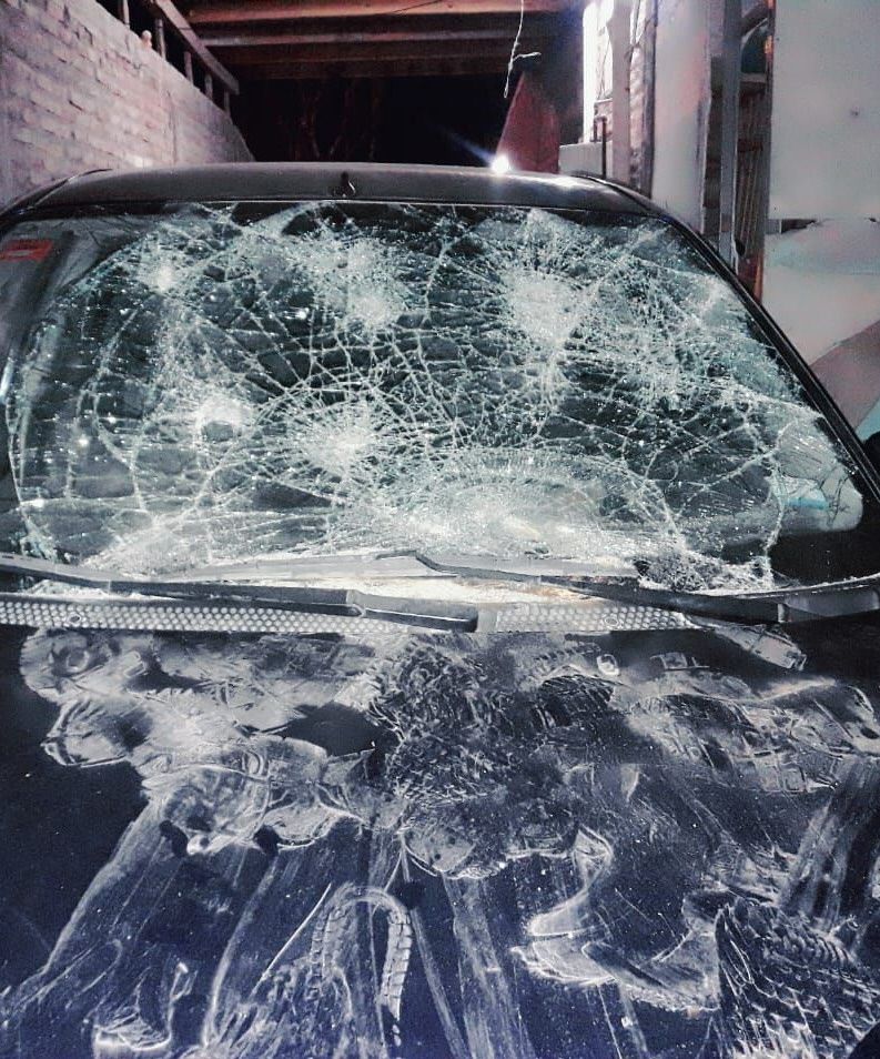 Unos 10 sujetos armados con cuchillos, machetes y piedras robaron a la 1 de ayer un celular, $400, un estéreo y otros objetos de un auto en la puerta de una casa del barrio Colón, en Santa Lucía, donde estaba un grupo de amigos. Como no pudieron entrar al hogar, apedrearon el auto (foto) y la casa. Efectivos de la Subcomisaría Santa Lucía Este detuvieron a 4 y a 2 hermanas de uno de ellos, indicaron.