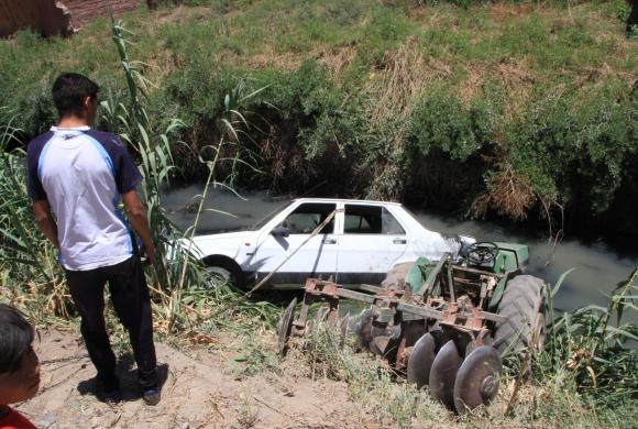 El doble accidente ocurrió ayer al mediodía en la intersección de calles Salta y Colón, Caucete. En la Policía informaron que el protagonista fue Hugo Cardozo (28), quien manejaba aparentemente alcoholizado. La versión policial señala que Cardozo conducía su Fiat Regatta y por el estado que tenía perdió el control y cayó al zanjón con agua. Después, el joven caminó unos 300 m hasta su casa, regresó en el tractor, pero salió golpeado al caer en ese vehículo al desagüe.