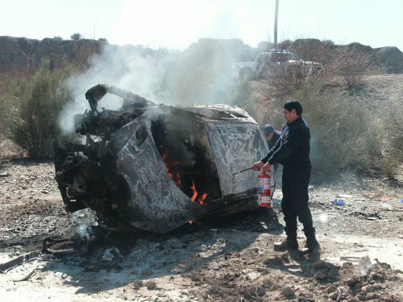 Precisamente una comisión de esa seccional al mando del segundo jefe, el oficial principal Gustavo Adolfo Caño, llegó minutos después del siniestro y con matafuegos controlaron las últimas llamas, que ya habían destruido el Peugeot 206 siniestrado.