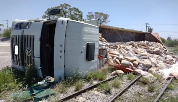 Un camionero entrerriano llamado Gustavo Pretto sufrió ayer graves lesiones al volcar en un vehículo marca VW en la Ruta 153, a la altura de Cañada Honda, Sarmiento. Según la Policía, llevaba 1320 bolsas de cal que había cargado en Los Berros. Su estado era delicado, informaron los voceros.