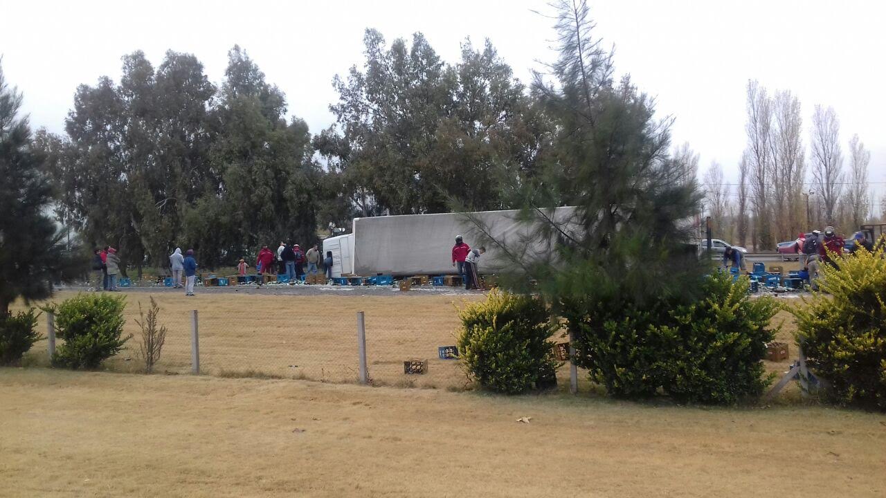 De inmediato, las personas que se encontraban en la zona se abalanzaron sobre las bebidas para llevarse las botellas que no habían sufrido daños. Lo hicieron incluso con el chofer golpeado dentro de la cabina.