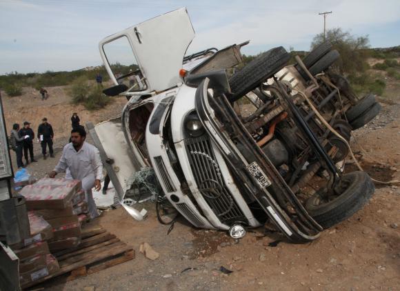 Javier Morandi (37), el chofer, dijo a la Policía que se le bloqueó una de las ruedas delanteras del Mercedes Benz 1114. Para otros se durmió. Sea como sea, todo indica que el camionero perdió el control del vehículo en una bajada a la salida del paraje Cuesta de Las Vacas, agarró la banquina y se dio vuelta.
