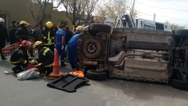Por el hecho, los uniformados quedaron atrapados en el interior del rodado y tuvieron que ser rescatados por personal de Bomberos y trasladados hasta el servicio de Urgencia del Hospital Rawson.