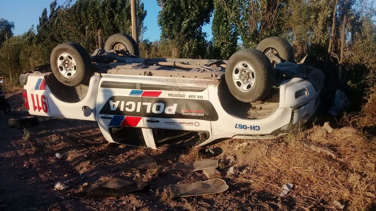 Este lunes por la mañana, alrededor de las 6:30, un patrullero de la Policía de San Juan volcó. El accidente ocurrió en calle España, entre calles 6 y 7, en el departamento Pocito.