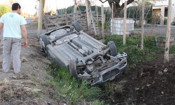 Un hombre de 45 años volcó con su auto Chevrolet Aveo y terminó dentro de una acequia en el callejón López, entre 9 y 10, en Médano de Oro, Rawson. Esto pasó ayer a las 17.30 y el accidentado fue Brahin Abraham, quien salió ileso, informó la Policía.