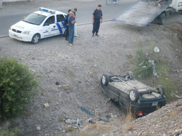Pudo ser el reventón de la cubierta. También la amanecida, porque eran ya las 7. O sencillamente fue la mala suerte que hizo que un joven que supuestamente venía de estudiar, se saliera del lateral de ruta 40 y se estrellara dentro de una zanja. El auto terminó dado vuelta y muy dañado, y él ileso gracias al cinturón de seguridad.