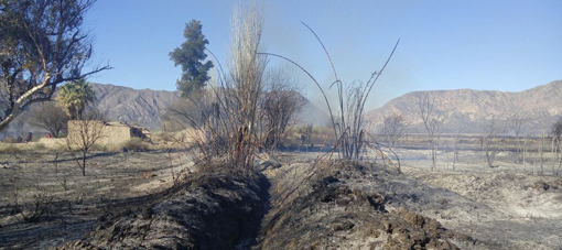 El fuego se extendió por las pasturas y mató algunos animales (caprinos), ayudado por el viento Zonda que sopló en el distrito norteño.