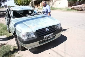 Una familia cordobesa que venía a la Difunta Correa volcó con su auto Fiat Uno sobre la ruta 20, en 25 de Mayo. Ocurrió a las 10:30 de ayer, 30 kilómetros al Oeste del Encón. En el coche viajaban Sandra Guevara (44) junto a sus hijos Nihuel (8) e Irupe (11), y sus padres Miguel Guevara (68) y Leonor Vargas (63), quienes salieron prácticamente ilesos.