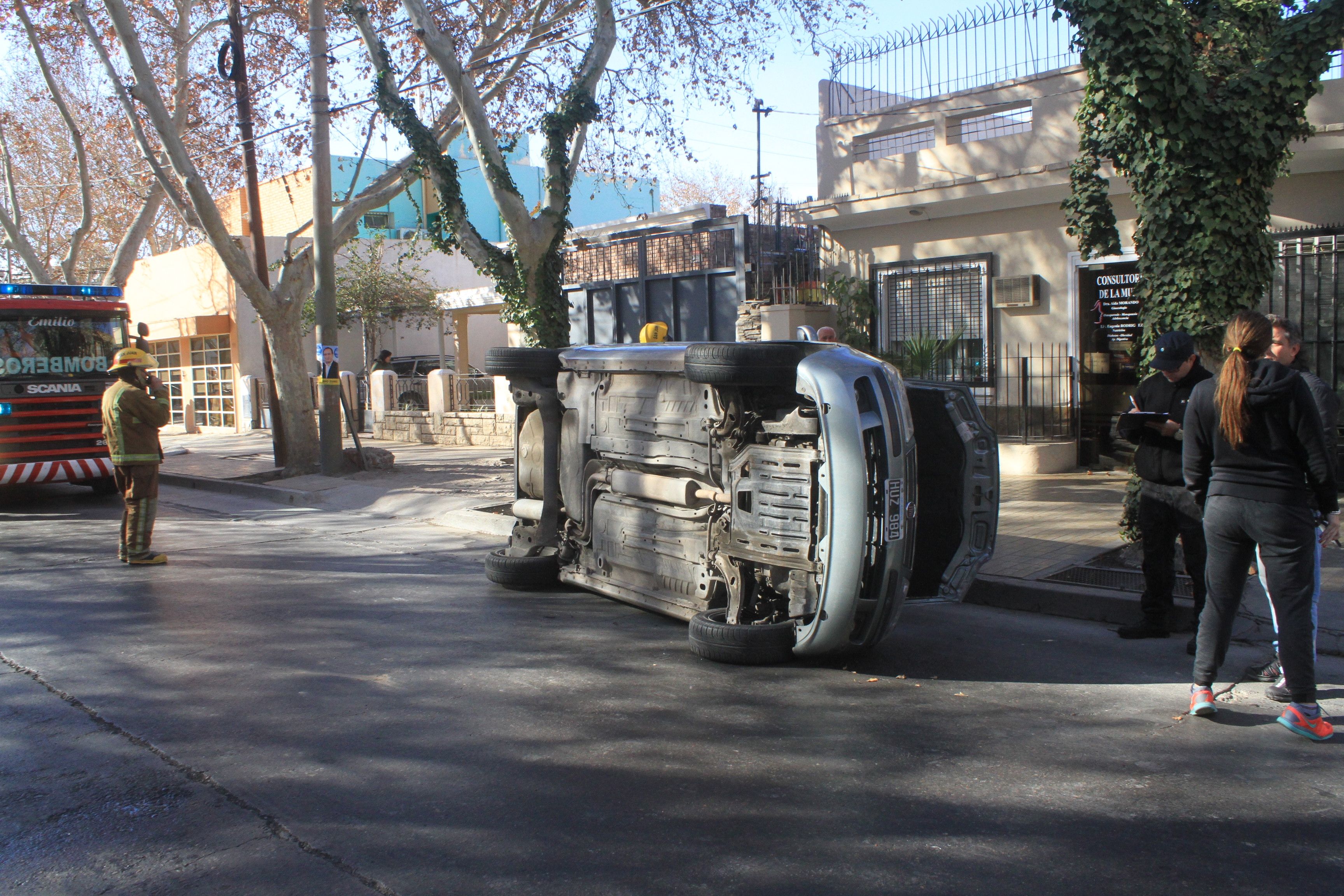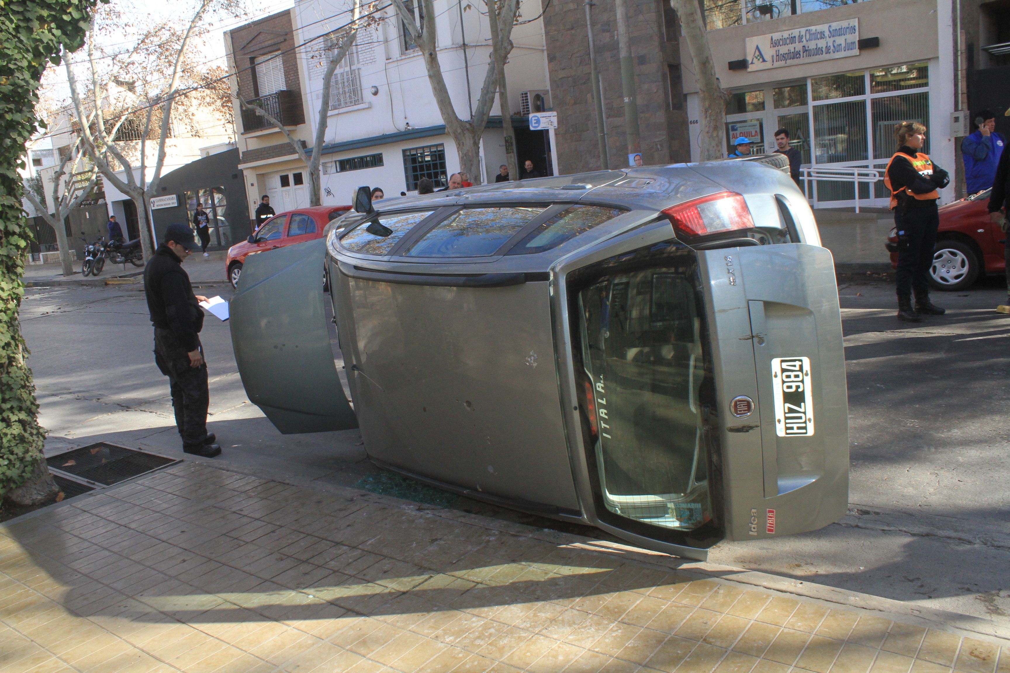 Un auto Fiat Idea, donde viajaba una sola persona, un joven de 18 años, terminó dado vuelta producto del accidente. La versión policial indicó que el vehículo que volcó, previamente tocó a un VW Fox que estaba estacionado en doble fila y que el Idea intentó esquivar.