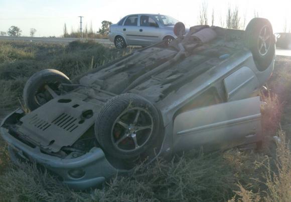 Dos mendocinos resultaron heridos ayer en la madrugada cuando el auto en el que viajaban perdió una rueda y acabó volcado a un costado de la Ruta Nacional 40, a un kilómetro al Norte del ingreso a la villa cabecera de Sarmiento. Ambos fueron atendidos en un hospital, pero las heridas no revestían gravedad, indicaron en la Seccional 8va.