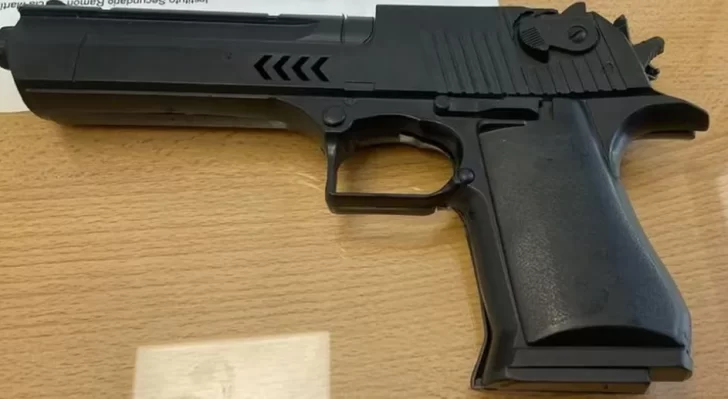 Con las características aportadas personal policial observó en calle Correa y Caseros a dos sujetos en bicicleta, los cuales al advertir la presencia policial se dan a la fuga uno corriendo y el otro en bicicleta cayéndose a los pocos metros. Se llevó a cabo la aprehensión de un joven de 22 años y al realizarle un palpado de urgencia se le encontró entre sus prendas una réplica de plástico de arma de fuego. Fue trasladado a la Comisaría jurisdiccional a los fines legales correspondientes.