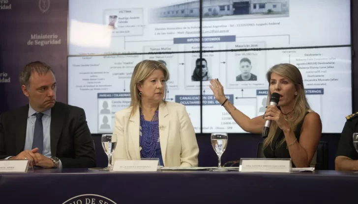 Acompañada por el jefe de Gabinete, Manuel Adorni, y la jueza federal Sandra Arroyo Salgado, Monteoliva sostuvo que los implicados se contactaron con la víctima a través de una app de citas con un perfil falso denominado “Julieta Ayelén Cardozo”.