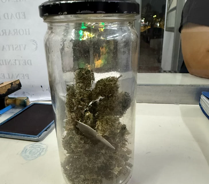 Un hombre fue detenido esta madrugada al encontrársele un frasco de café donde llevaba cogollos de marihuana. Según el reporte policial, el sujeto fue entrevistado por uniformados porque estaba provocando disturbios en la esquina de Mendoza y Rivadavia, en Capital, molestando a las personas que circulaban por el lugar. Cuando personal policial intentó entrevistarlo, se resistió y por eso lo aprehendieron.