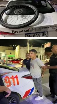 Ayer en la noche, cuando el móvil comunal Rivadavia 3 se encontraba realizando recorridas de prevención por el sector asignado recibieron un aviso vía equipo de comunicación sobre una persona con una rueda de bicicleta en Avenida Ignacio de la Roza e Hipólito Irigoyen.