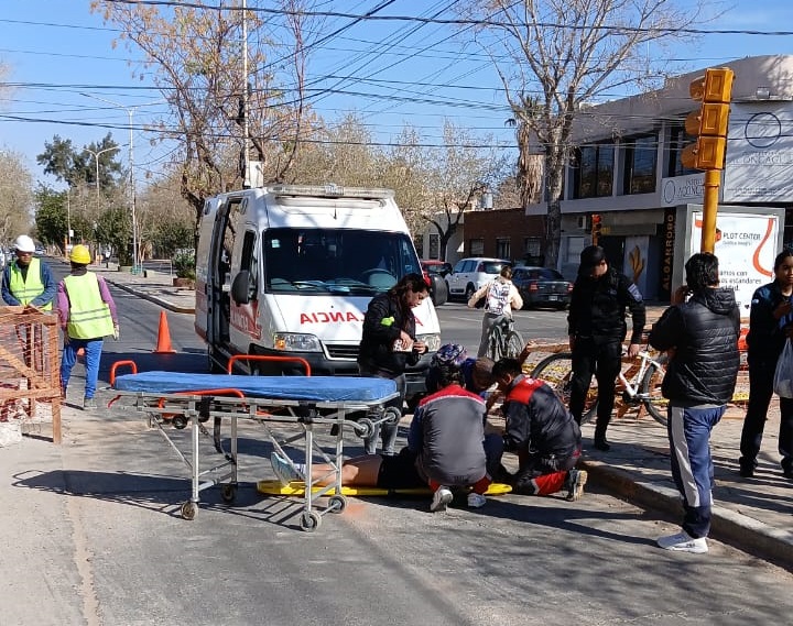 La ciclista fue atendida por personal médico y trasladada al Hospital Rawson con politraumatismos.