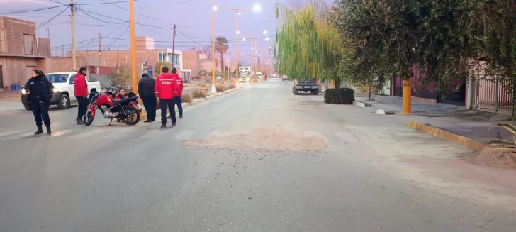 En la mañana de este lunes hoy, se registró un accidente de tránsito en la intersección de Calle Roque Sáenz Peña y Dorrego, Santa Lucía, entre una moto y una camioneta, pero también un bache formó parte del siniestro vial que derivó con el motociclista hospitalizado.