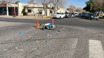 Una impactante colisión se produjo este mediodía entre un auto y una motocicleta en Lateral Sur y General Acha, en Trinidad. Trabajan en el lugar personal de la Policía de San Juan y Vialidad Nacional.