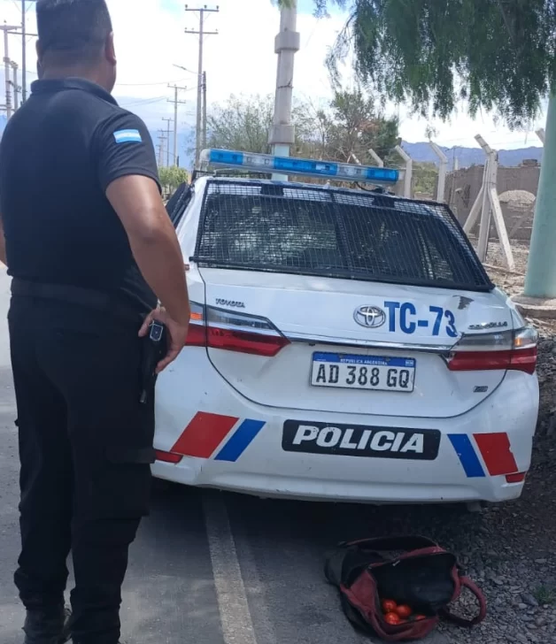 Una llamada al 911, alertó a la policía de que algo sucedía en la Finca Marino, ubicada en Chacabuco y Libertador, en Rivadavia. Al llegar al lugar, motoristas del Comando Oeste encontraron a dos sujetos huyendo por los campos con un cajón, quienes fueron posteriormente aprehendidos con una mochila y un cajón conteniendo tomate. En total habían conseguido llevarse 41 kilos de tomate que fueron devueltos a su propietario.