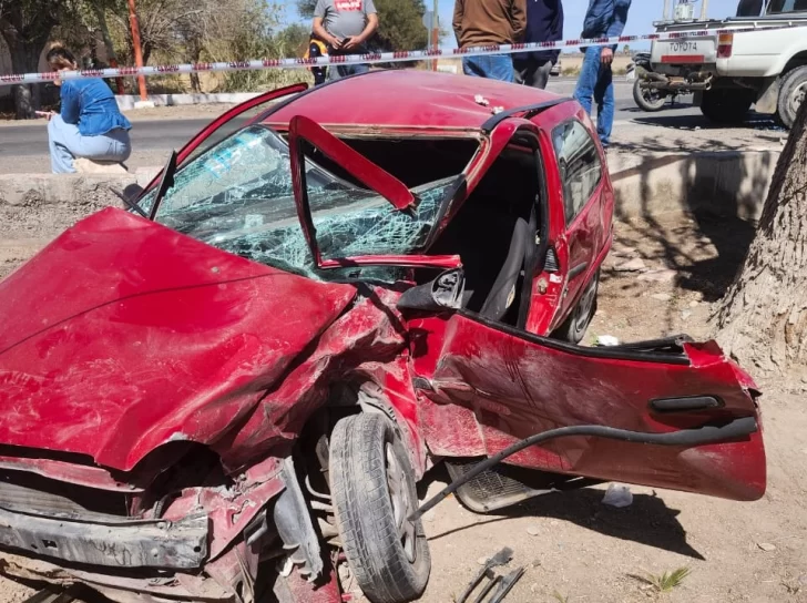 El conductor del Chevrolet Corsa, de color rojo, sufrió las peores secuelas del siniestro vial que involucró también a una Toyota Hilux, color blanca, este domingo, alrededor de las 12:30, en la intersección de calles Rodríguez y Florida, en el departamento San Martín.