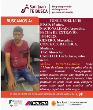 “Se ha intensificado la búsqueda en la zona sur y se ruega a la población, comunicarse inmediatamente al 911 ante cualquier visualización o algún dato que oriente a nuestro personal”, pidieron desde la Fuerza. Cabe destacar que se activó el protocolo “San Juan te busca”.