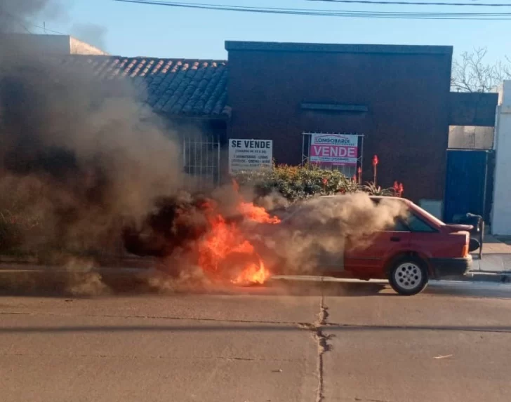 El episodio ocurrió frente a la Escuela Castelli y tuvo como protagonista a un Ford Escort, conducido por un hombre de 27 años. De acuerdo a la información policial, el fuego se habría originado a raíz de una falla en el motor. En medio de la situación, la madre y el menor resultaron lesionados al impactar contra el torpedo del vehículo.