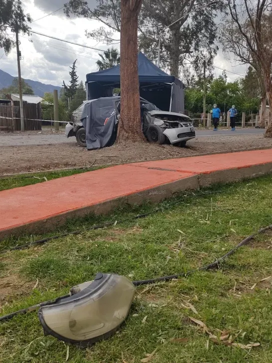 Los voceros comentaron que, por circunstancias que son materia de investigación, el conductor perdió el dominio del rodado, derrapando y posteriormente impactando con la parte lateral posterior derecha contra un eucalipto, lo que hizo cambiar de trayectoria al rodado, que se cruzó hacia el carril Sur, y luego de un segundo derrape, terminó impactando con el costado lateral derecho contra otro eucalipto, que está sobre la banquina Sur, justo frente a la Escuela Múltiple Especial de Zonda.