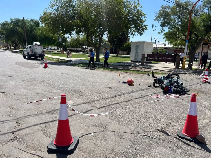Uno de los ocupantes de la motocicleta resultó gravemente herido y fue trasladado en ambulancia al Hospital Rawson.
