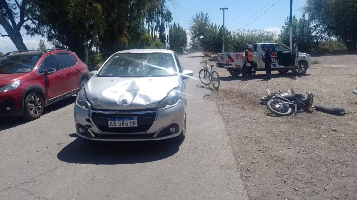 Un serio siniestro vial sufrió un motociclista que chocó contra una automovilista en Rawson. La víctima fue hospitalizada con pérdida de conocimiento y en grave estado.