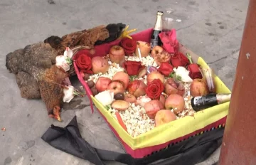 Según detalló una fuente cercana a la causa a El Liberal, dentro de la casa los investigadores encontraron un altar con elementos característicos de esa religión: una canasta con papas y pochoclos, imágenes de santidades, velas de colores, un cuenco con tridentes y un cuchillo tipo daga de 24 centímetros. Todo esto estaba rodeado de un charco de sangre, aparentemente de la propia víctima.