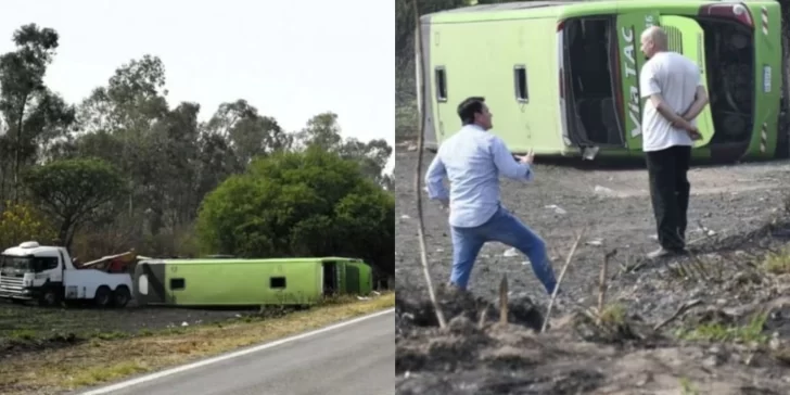 Según las primeras hipótesis, el auto habría embestido al micro y como consecuencia del impacto, el ómnibus terminó volcando sobre uno de los costados de la ruta.