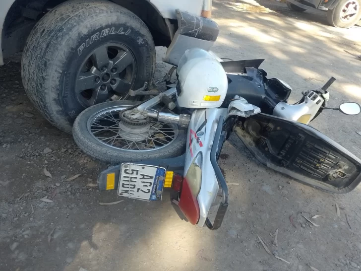 Un accidente de tránsito ocurrió alrededor del mediodía de este lunes en la esquina de Cristóbal Colón y Juan José Bustos, Caucete. El siniestro involucró a una motocicleta marca Corven 110c.c., conducida por Carlos Morales, de 73 años, y una camioneta Chevrolet S10, conducida por Matías Álvarez, de 21 años.