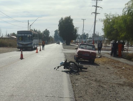 Lucas Flores, quien conducía un ciclomotor Corven 150 cc. impactó con su frente la parte trasera del auto y sufrió un fuerte golpe. Como consecuencua fue trasladado al hospital departamental con raspones en su pierna izquierda, recibiendo con posterioridad el alta médica.